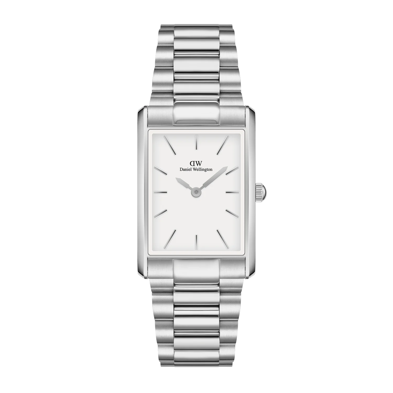 With sleek geometric edges and two sizes to choose from, our Bound collection brings perfect symmetry to your wrist. The curved rectangular case of this silver watch matches the exact width of its 3-link strap—giving you a seamlessly integrated dial.