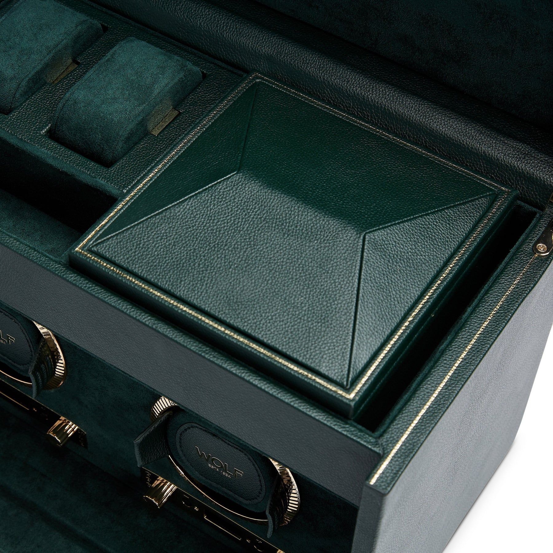 place in Ireland in the early 1900's. Made with fine pebble grain leather and sumptuous interior suede details. Take your watches for a spin in the double watch winder with storage.