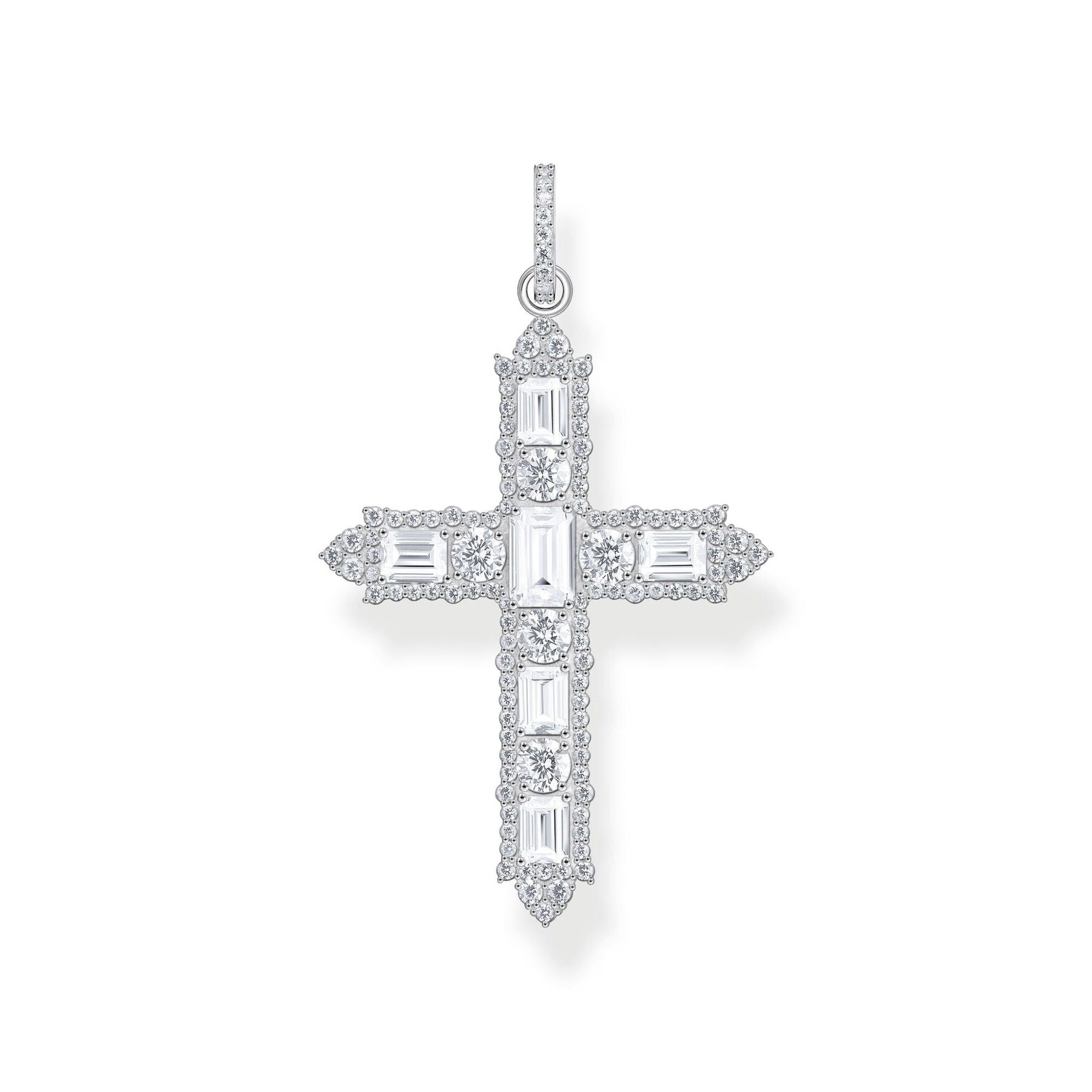 - Fine pavé edge decoration around the cross and the eyelet