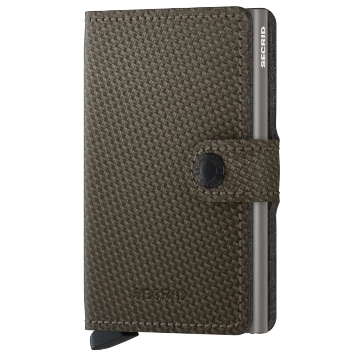 The Miniwallet Carbon Khaki has a weave pattern. The weave pattern of carbon fibres inspired this treatment of the leather surface.
