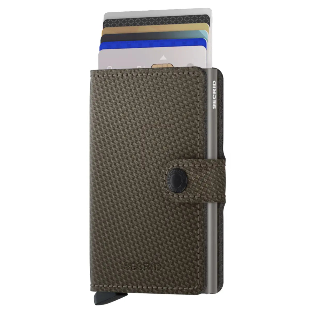 The patented mechanism allows you to slide out your cards with one simple motion, ready for immediate use. The aluminium protects from bending, breaking and unwanted wireless communication.Carbon